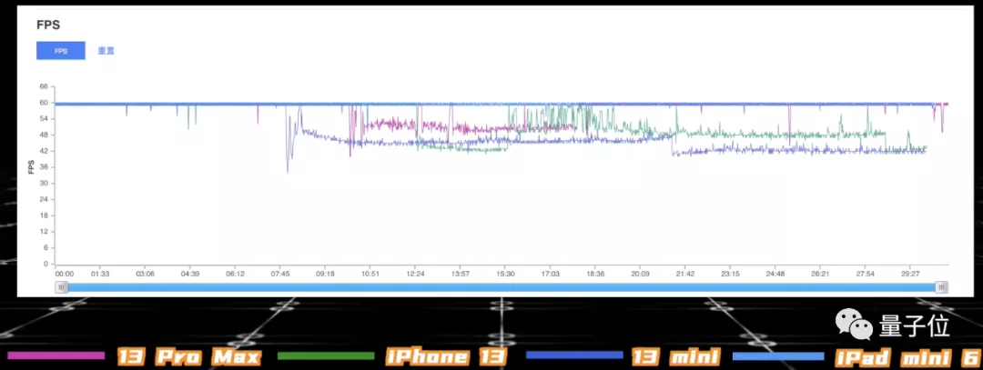 而iPad Mini 6則比較恐怖:幀率幾乎一直維持在60上下。