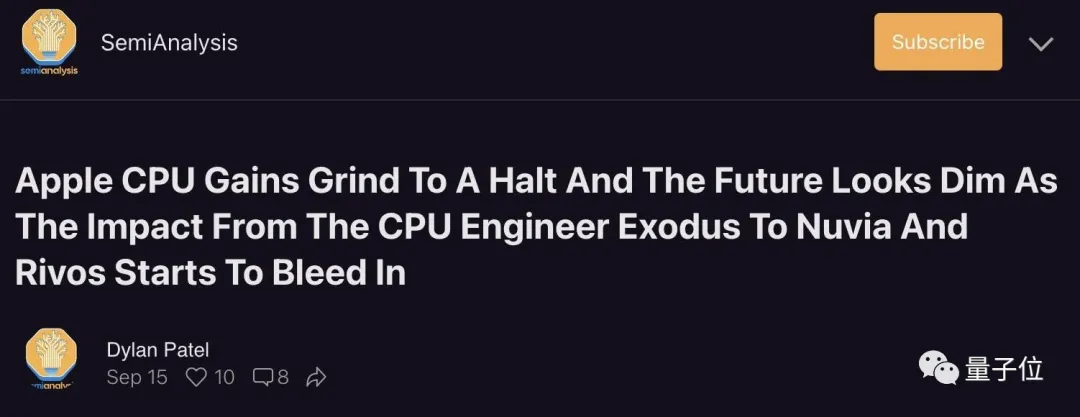 另外,來自半導體分析網站SemiAnalysis的一個聲音則表示,蘋果芯片團隊的人才流失有點嚴重。