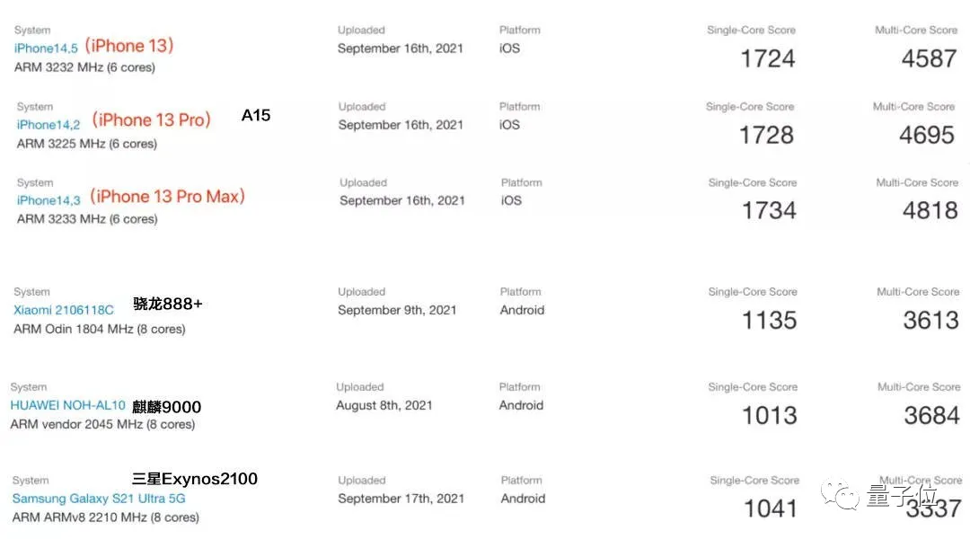 而安卓陣營的頂流芯片們在跑分結果上也確實比不過A15: