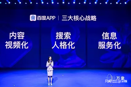 今年萬象大會上百度副總裁、百度App總經理平曉黎提出的百度打造內容生態的三大核心戰略:內容視頻化、搜索人格化和信息服務化。其中,將百度所特有的“搜索”基因,與精準化的內容匹配要求相結合,形成的“搜索人格化”戰略,將是百家號重構內容生產、消費邏輯的重要舉措。