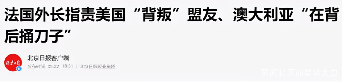 美國才剛背刺法國這個盟友,就説要為盟友挺身而出,我覺得美國這不是為盟友兩肋插刀,而是插盟友兩刀才對。