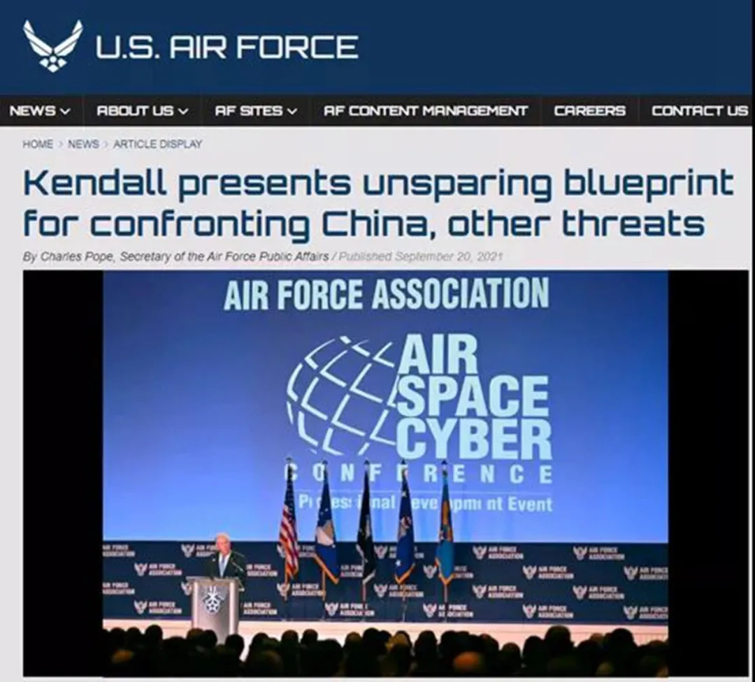 “我上任只有三個理由:中國、中國,還是中國。”説這話的是美國空軍新任部長肯德爾。