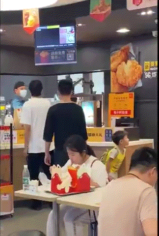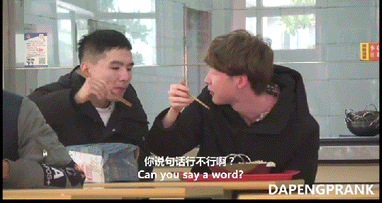 在食堂裏,他碰到一個年輕人,對着對方的餐盤伸筷子夾菜,全程沒説什麼話,就是想吃人家的盤中餐。