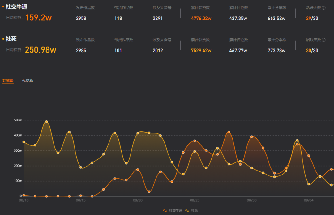 新榜數據顯示,抖音上“社交牛逼”作品日均獲贊一度近160萬。