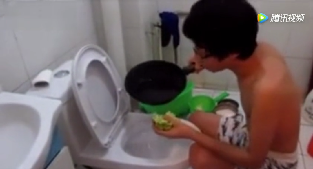 於是,b哥視頻出着出着,最後變成了在馬桶裏吃麻辣燙。