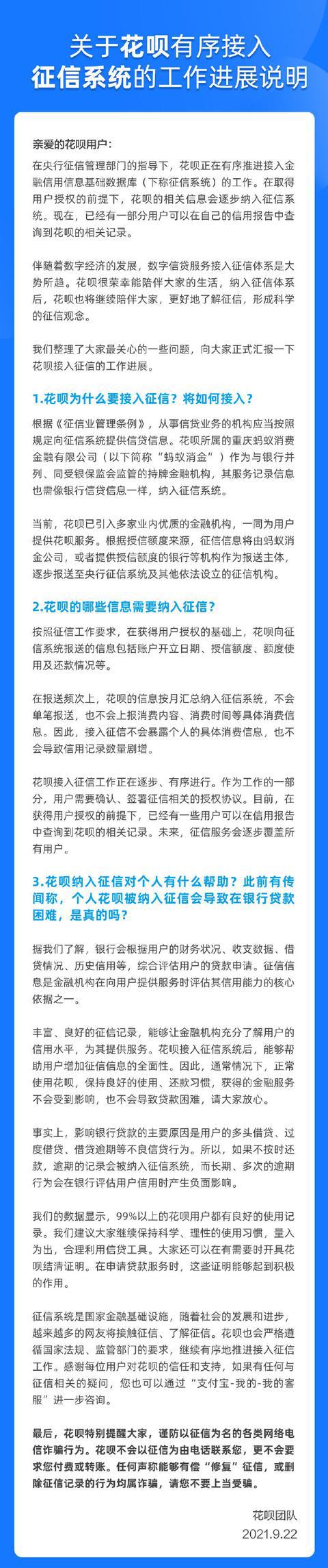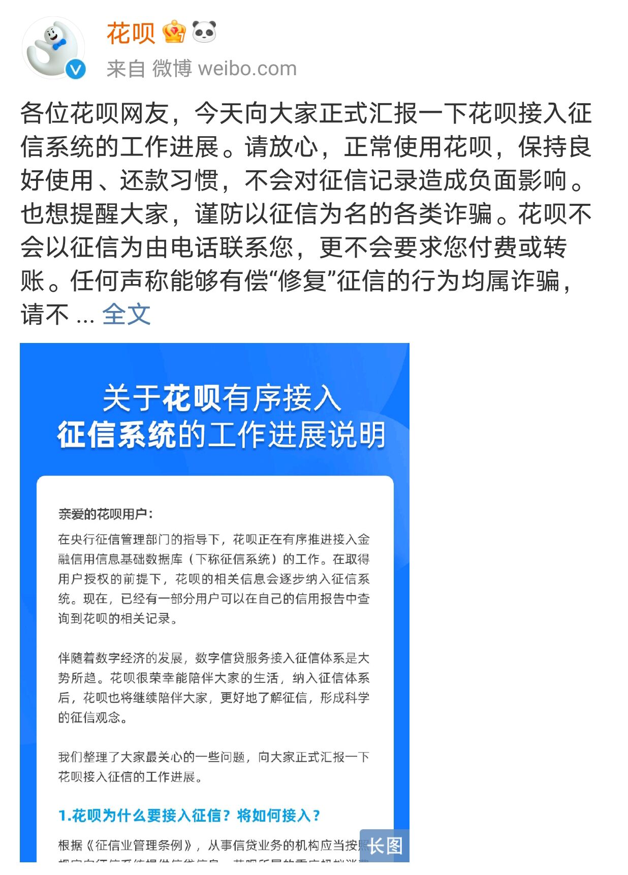 就在昨天,花唄官方微博發佈通知,稱花唄正式全面接入央行徵信系統。