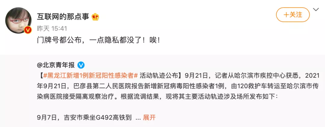 疫情這麼久,還是頭一次聽説通報信息要報門牌號的。真是太不尊重人了。