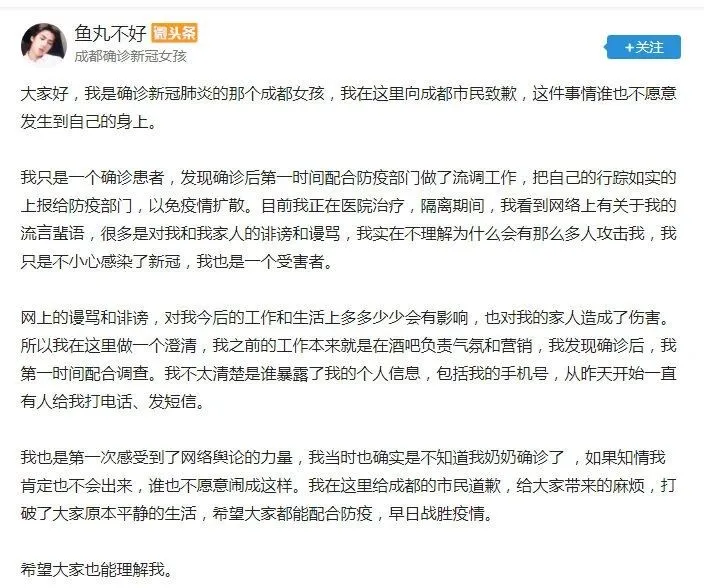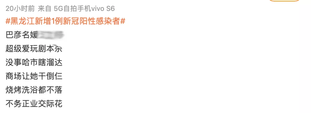 就拿這次的哈爾濱女孩來説,行動軌跡遍及全城,害得多少商店停業?多少人訂好的行程被取消?多少人連夜冒雨排隊檢測核酸?