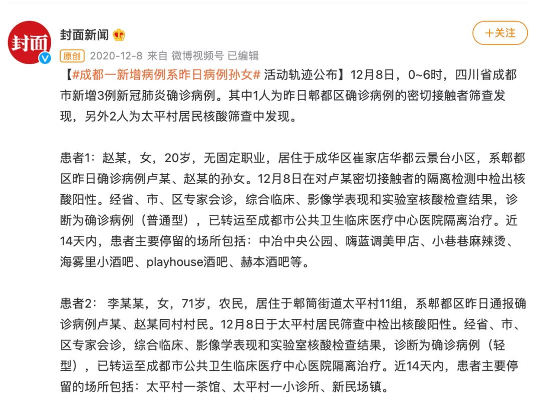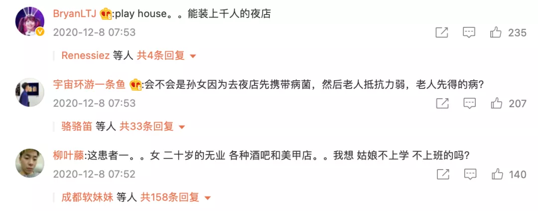 明明是公佈三個確診病例的行程軌跡,卻偏偏只帶#成都女孩#的話題,好奇點進去一看,竟然連續幾天都在酒吧玩,能是啥好人嗎?