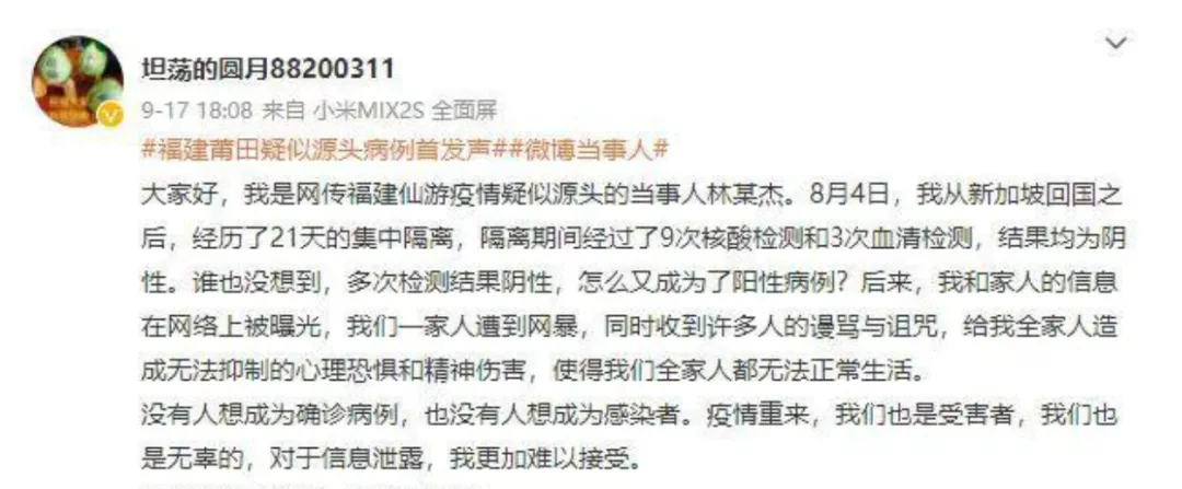 全國性權威媒體通報她的流調報告時,居然連她傢俱體的門牌號也一併公佈出來了。