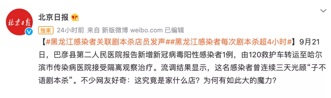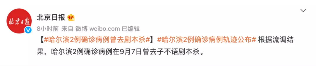 公佈第2、3例病例流調報告時也特意帶上了#劇本殺#的tag。