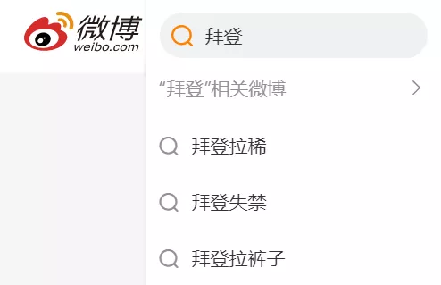 這則消息有多熱?我們只需要在新浪微博輸入“拜登”倆字,接着跳出來三個關鍵詞,分別是:拜登拉稀、拜登失禁、拜登拉褲子。