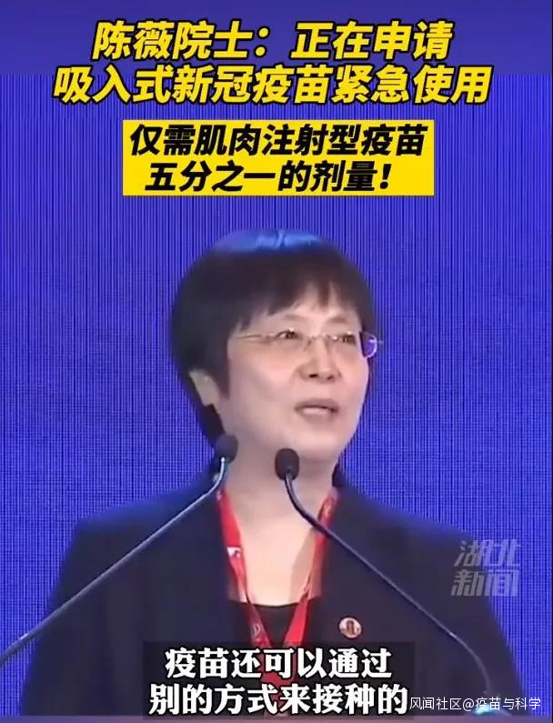今年6月3日,陳薇院士在2021浦江創新論壇上透露,克威莎已經開發出吸入型疫苗,正在申請緊急使用。