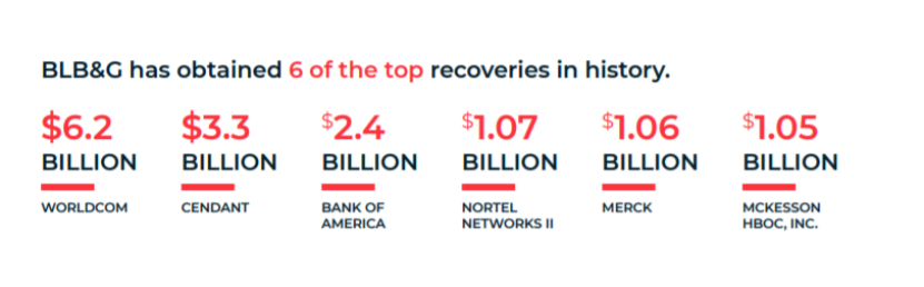 這是一家在集體訴訟領域有過輝煌戰績的律所,比如其代理過的世通證券訴訟(總追回款超過 61.9 億美元),勝騰證券訴訟為原告達成近32億美元的和解。