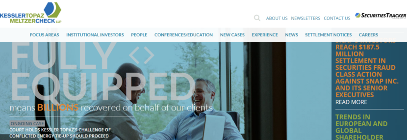 Kessler Topaz Meltzer & Check LLP於賓夕法尼亞州以及加利福尼亞州設有辦事處,是世界上最大的律師事務所之一,專門從事複雜訴訟的訴訟。1987年成立。該公司參與了一些最引人注目的案件,一個典型的例子是其在挑戰特斯拉2016 年收購 Solar City Corporation 的衍生品和集體訴訟中擔任聯席首席法律顧問。