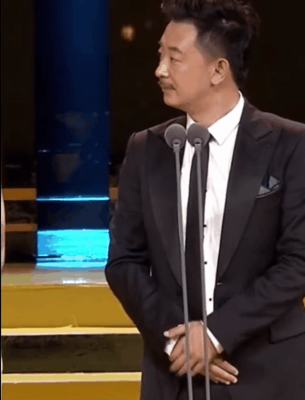 微博中視頻後半段的部分,實際上是第四屆北京國際電影節閉幕式上的頒獎典禮上,黃海波示意另一位主持人黃聖依先發言的片段。