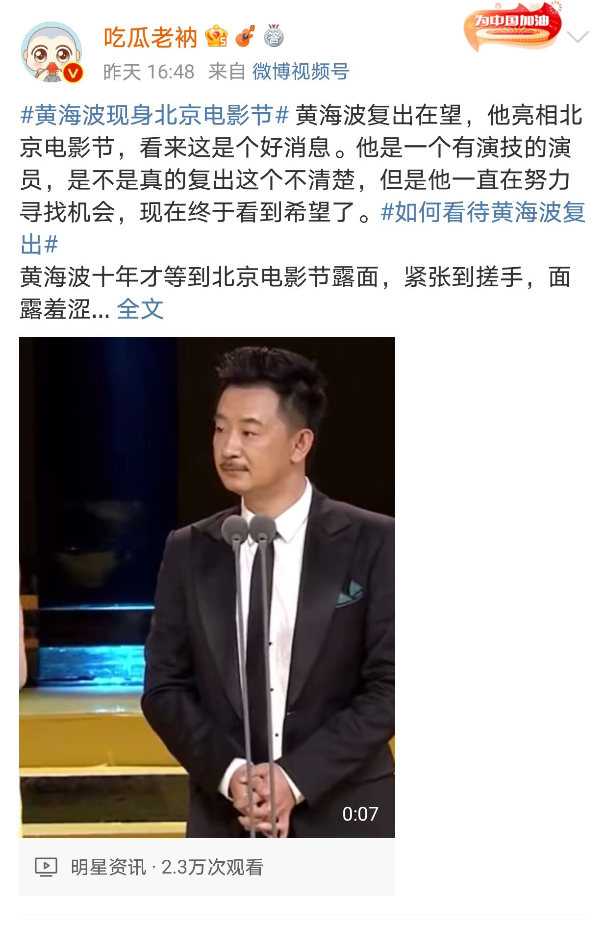 第十一屆北京國際電影節於9月21日正式開幕,而在昨天下午,微博上就有消息傳出,説黃海波現身北京電影節,好像是要復出了。