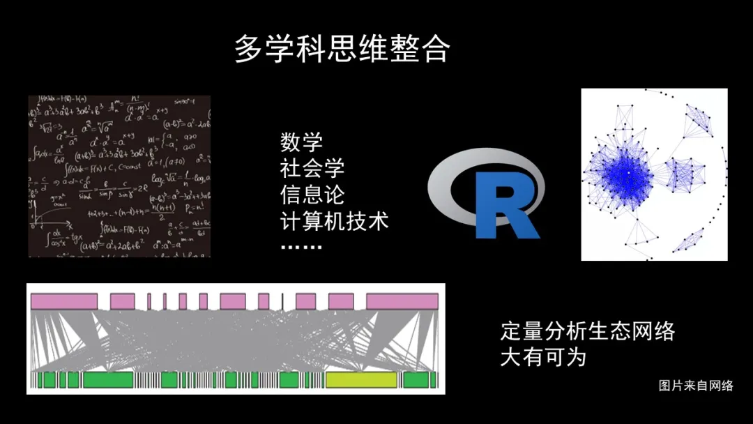 隨着科學技術的發展,科學家整合了數學、社會學、信息論、生物學等等多學科思維,生態網絡從早期的概念提出和現象描述,發展到了定量研究階段,很多生態網絡的結構和概念得以解析。