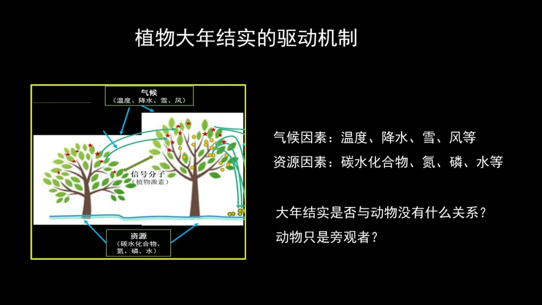 **那麼我們想問是否大年結實就與動物沒有什麼關係呢?**作為我們研究動物的人,一般會從動物的角度去看看,是不是與動物有關,因為作為森林生態系統的重要組成成員,動物不可能只作為一個旁觀者。