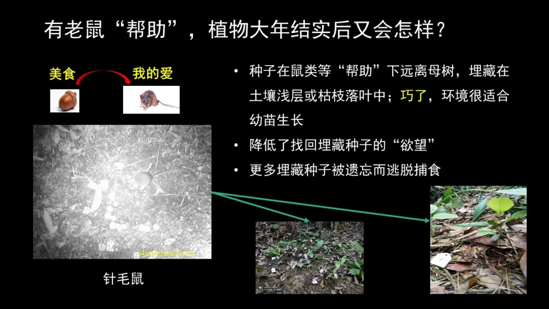 在森林生態系統中也同樣存在,很多動物與植物之間的關係需要我們去了解。例如鼠類等動物如何感知植物大年結實的到來?而動物與植物如何互作,進而維持着森林生態系統的穩定和健康等等。