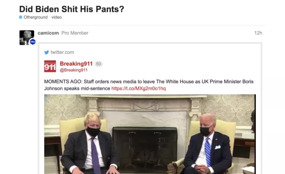 這下就成了全網的樂子,全世界的網友都成了福爾摩斯,開始捕捉當時拜登、約翰遜、白宮工作人員、記者們的動作和表情,逐幀分析,到底發生了什麼事?為什麼忽然趕記者?拉了沒?是誰拉了?
