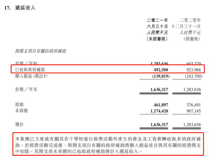 2020年天立教育獲政府補助高達9.24億元。今年上半年,其又已獲得政府補助約4.93億元。公司表示,政府補助主要用於若干學校進行教學活動所產生的薪金及工資薪酬的支付。