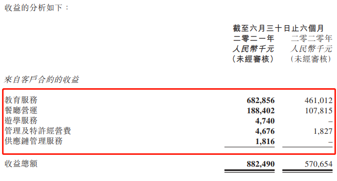 另外,折舊及攤銷成本由去年同期的5540萬元增加29.3%至7170萬元。原因系開辦6所自有學校(於2020/2021學年開課)所致;材料消耗成本由4900萬元增加116.5%至1.06億元,主要由於學生入讀人數增加,以及疫情緩解後學校餐廳恢復正常運營所致。