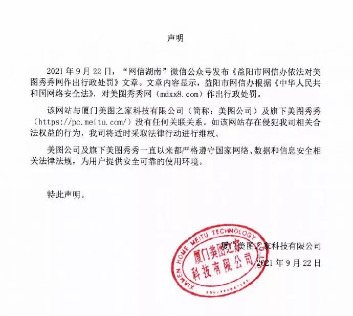 美圖秀秀:湖南益陽網信辦查處的“美圖秀秀網”與我無關