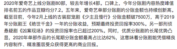 分賬劇,就是視頻上線後,平台根據點擊觀看情況,從會員費中抽取資金分賬給片方。