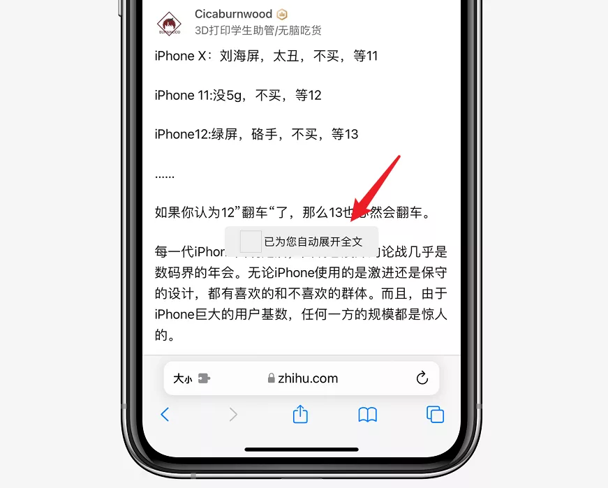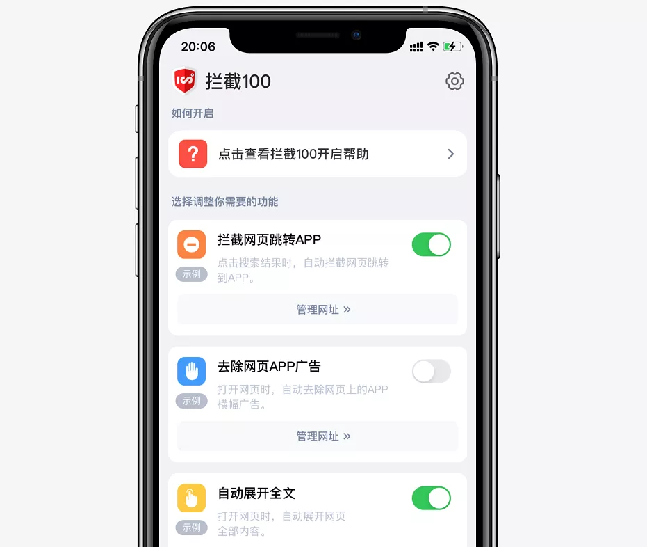 比如這兩天很火的擴展插件“ 攔截 100 ”,它就可以攔截 Safari 自動跳轉 App 並且自動展開全文。
