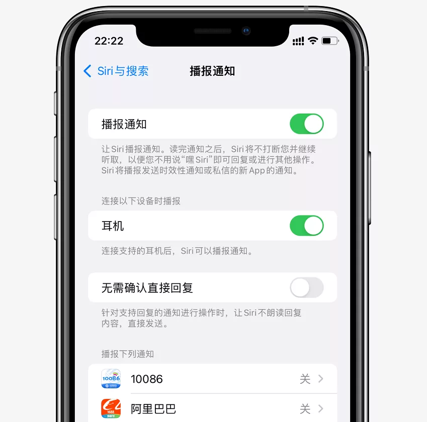 我們在【 設置 -Siri 與搜索 - 播放通知 】,選擇要播放的軟件即可。