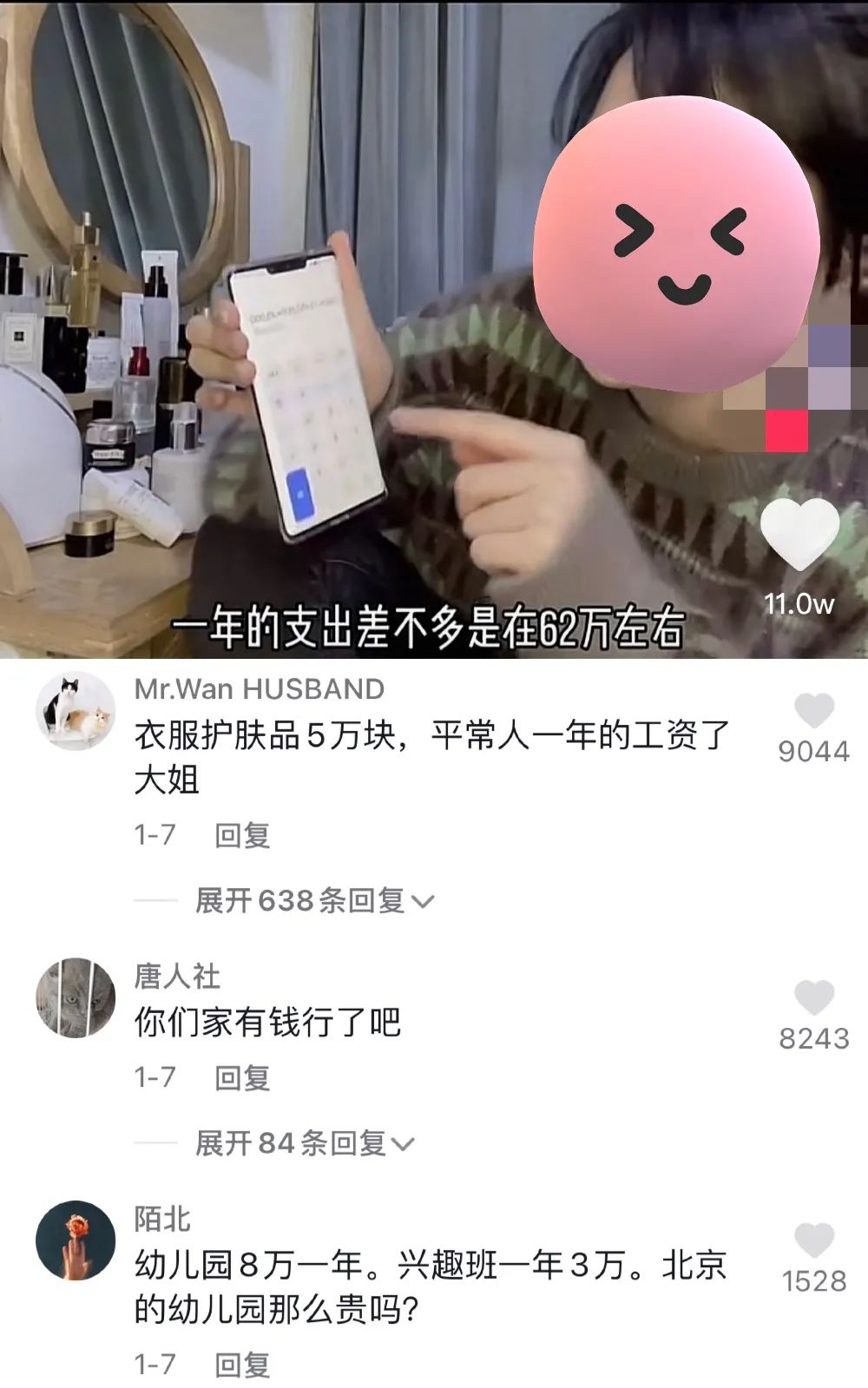衣服一年5萬,護膚品一年2萬,房租一年10萬。