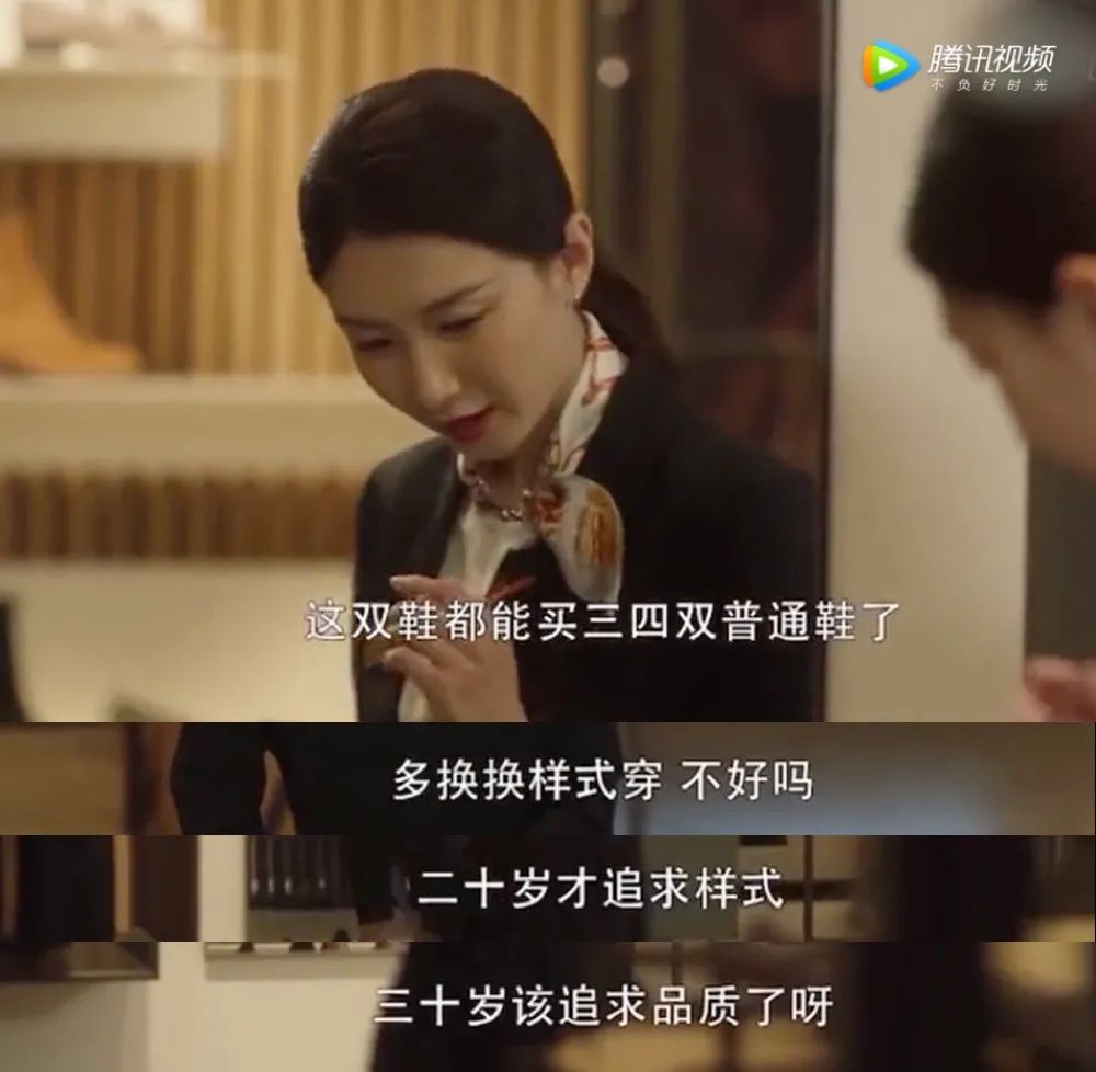 去年,《三十而已》中,王曼妮每個季度買一雙大牌鞋,早餐卻吃路邊攤,洗髮水都只買打折的。
