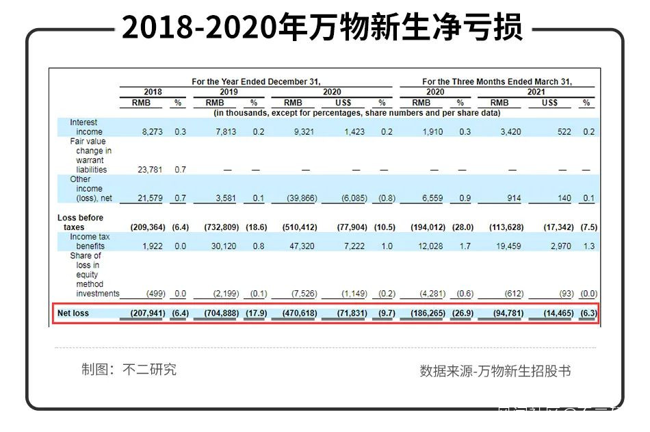 儘管IPO擴充了資金儲備、緩解了現金流壓力,但並未讓萬物新生徹底走出流血虧損的陰影。