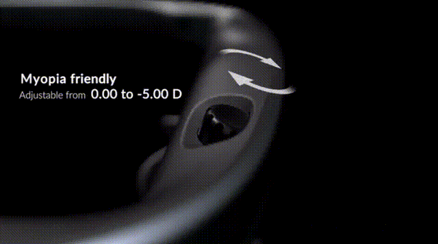 這副AR眼鏡自帶屈光度調節,0-500度範圍內的近視用户,都可以通過旋轉鏡架上的旋鈕,匹配自己的度數: