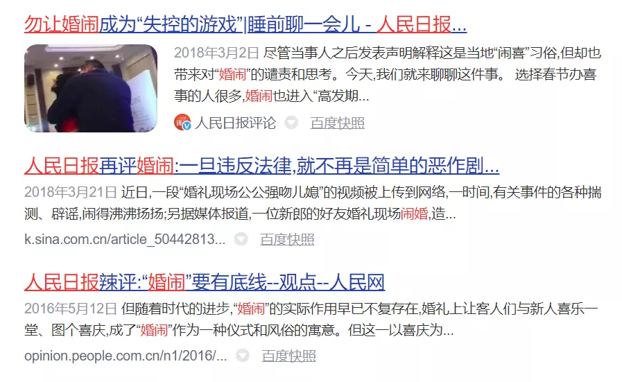 這些年來,《人民日報》多次評價婚鬧的惡俗性。