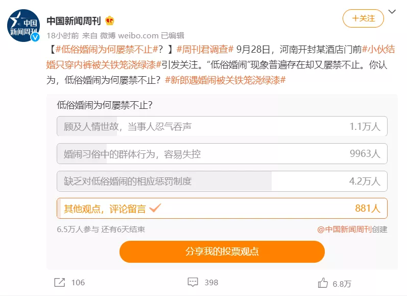 所以,他們對新郎惡作劇,釋放自己惡俗情緒,發發網上,賺個熱度。