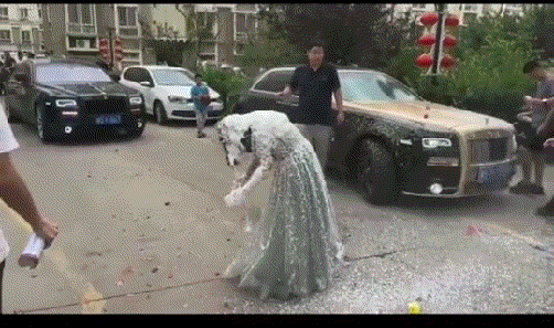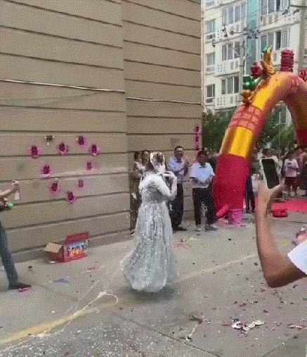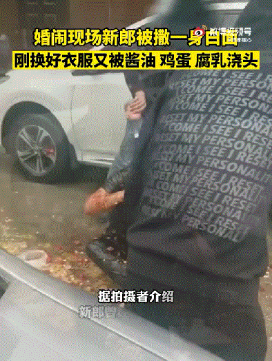 再是**“新郎結婚被瘋砸雞蛋丟麪粉”**。