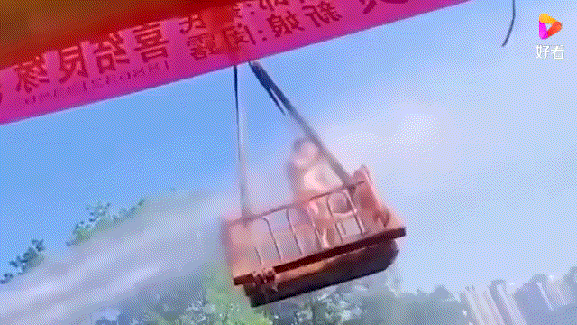 山東棗莊,結婚典禮開始之前,全身只剩紅內褲的新郎,被吊車吊在高空。