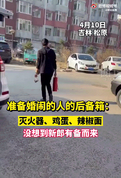 婚鬧發起者可以在後備箱裏藏下滅火器、雞蛋、辣椒麪。