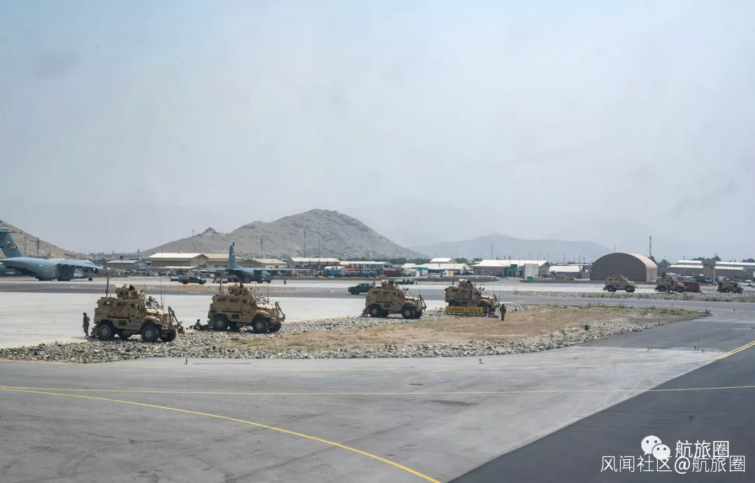 喀布爾機場,美軍由裝甲車和機槍組成的防線