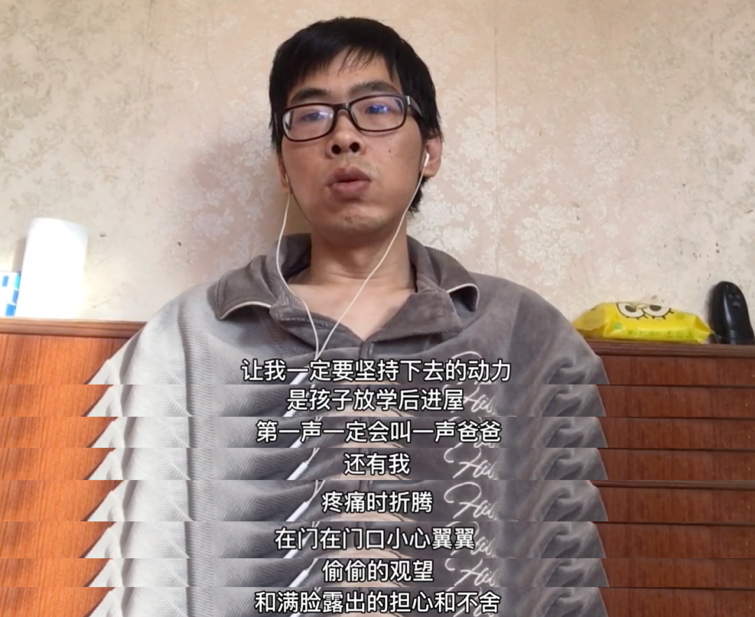 他疼痛呻吟時,經常看到女兒在門口小心翼翼觀望,不敢説話、不敢進屋,不知道怎麼安慰爸爸,一臉的擔心與不捨。
