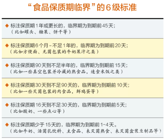 圖:“食品保質期臨街”的6級標準(來源:北京市工商局)