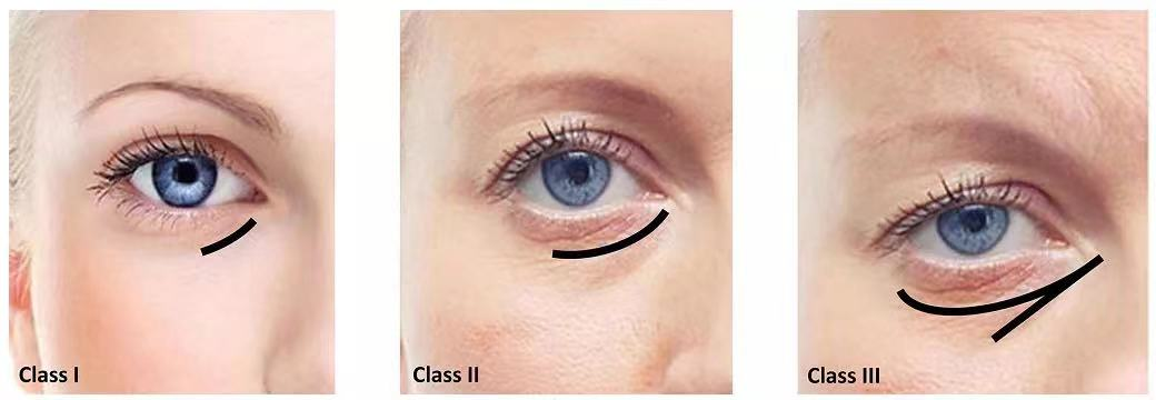 淚溝目前沒有統一的分型,國外常用的是Hirmand提出的基於臨牀外觀的分型。分為Class I, II及 III三型。