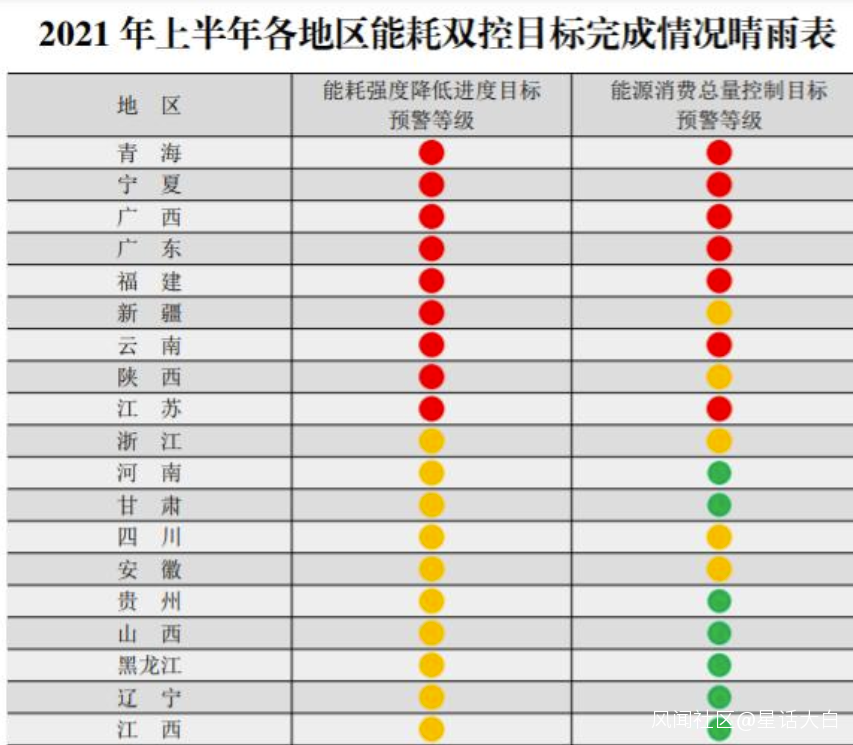 所以,當前出台限電措施的省份,基本是上半年能耗雙控目標,出現紅色預警,或者黃色預警。