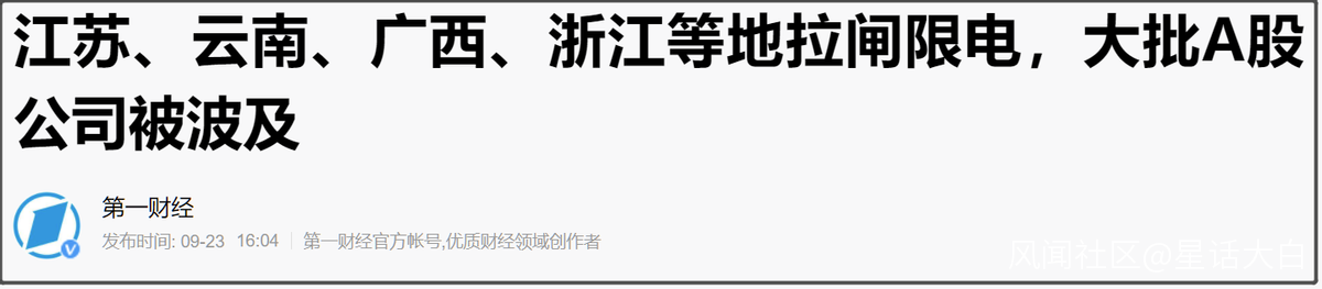 甚至出現一些A股上市公司都開始批量公告因為限電而減產甚至停產的現象。