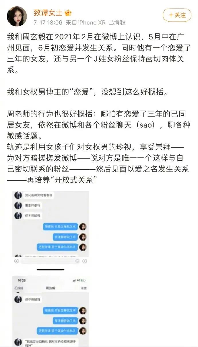 比如,之前因為是男性女權主義者而得到不少關注的周玄毅。