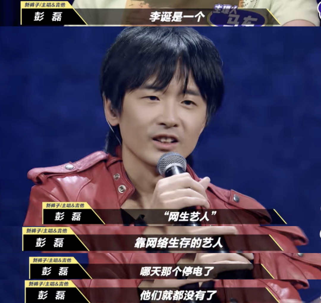 彭磊曾在節目中諷刺“搖滾老哥”,也曾在微博表態“反正我不要當老哥”。