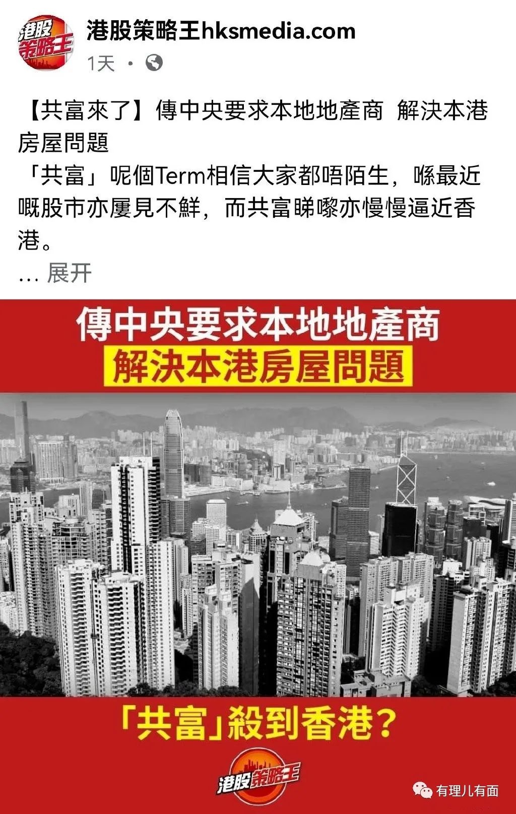 也有金融媒體,以“共富殺到香港”為題報道該事件。共同富裕是個好政策,為什麼到了他們口中就成了“殺到”?