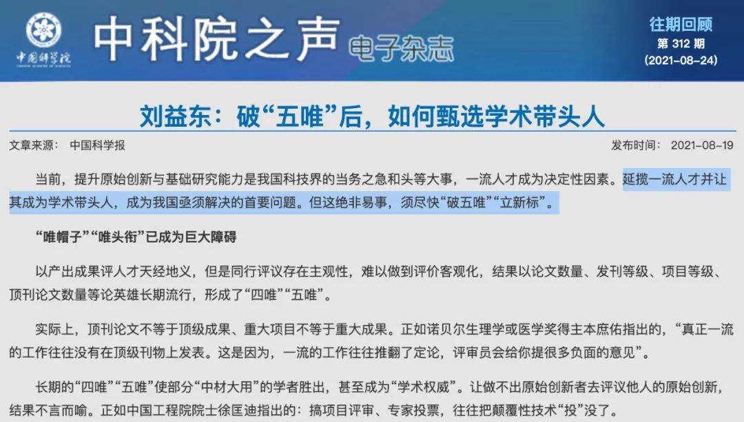 《破“五唯”後,如何甄選學術帶頭人》
